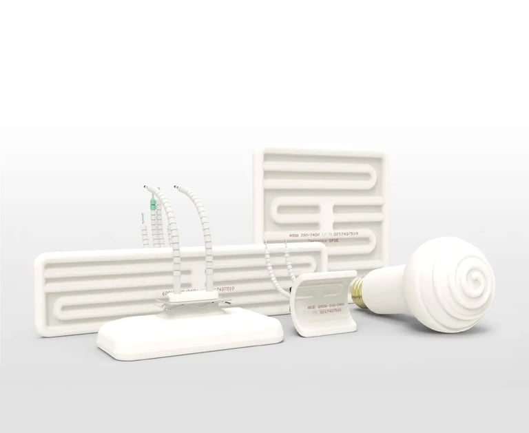 Keramik Heater juga sangat efektif dalam pemanas inframerah luar ruangan dan sauna inframerah. Elemen keramik yang diproduksi meliputi elemen palung keramik, elemen hollow keramik, elemen flat keramik, dan dapat dikustomisasi sesuai gambar.
